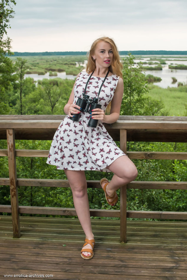 ALLURING LIGHT-HAIRED HELENE REVEALS HER HANDSOME CREAM COLORED BOD AND SUCCULENT SNATCH OUTDOORS