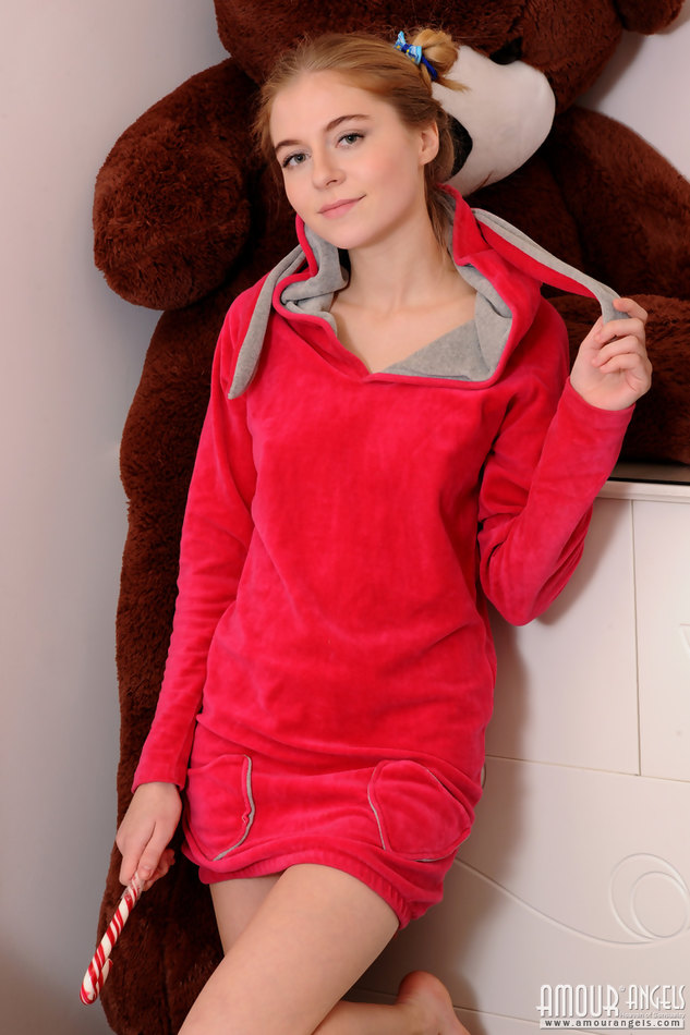 REDHEAD TEEN CHLOE AKA ANYA MOZOK IN RED HOODIE LICKING LOLLIPOP ON BED