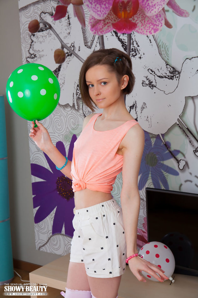 SHORT HAIRED TEEN CARAMEL IN COTTON PANTIES AND KNEE SOCKS